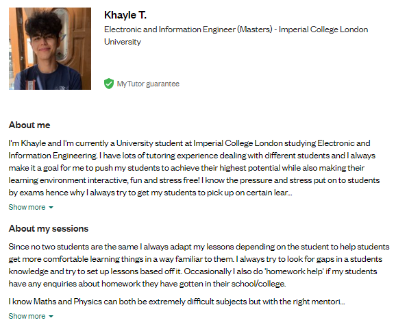 I took up a job as a Remote Academic Tutor at MyTutor.co.uk which I was then able to help tutor and mentor multiple students in both A-Levels and GCSEs.